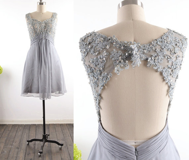 Grey Homecoming Dress,Modest Silver Gray Homecoming Gown,Grey Tulle Homecoming Gowns With Open Back Sequins Party Dress,Backless Sweet 16 Dresses