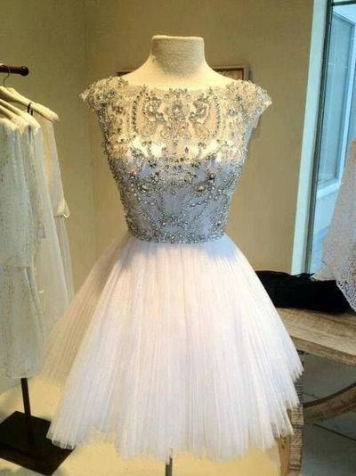 White Homecoming dresses, Short prom dresses, Beaded prom dresses