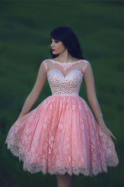 Lace Homecoming Dress,Pink Homecoming Dress,Pink Homecoming Dress,Lace Homecoming Dress,Short Prom Dress,Country Homecoming Gowns - 134