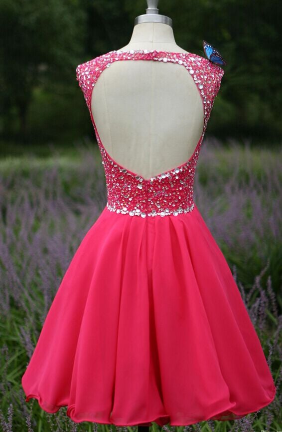 Red Homecoming Dress,Chiffon Homecoming Dresses,Short Prom Dress,Open Back Evening Dress,Sexy Prom Dress,Open Backs Homecoming Gowns - 169