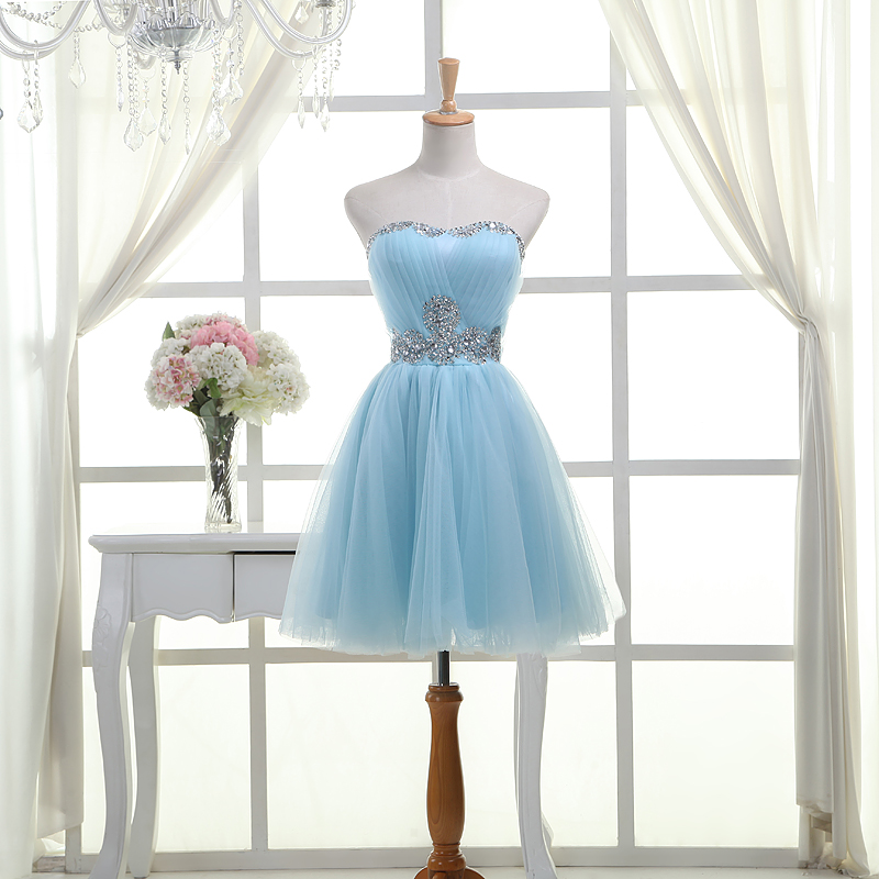 Light Sky Blue Homecoming Dress,Short Prom Dresses,Homecoming Gowns,Fitted Party Dress,Silver Beading Prom Dresses,Sparkly Cocktail Dress - 187