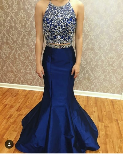 Two Pieces Halter Beading Real Made Prom Dresses,Long Evening Dresses,Prom Dresses On Sale,L31 - 262